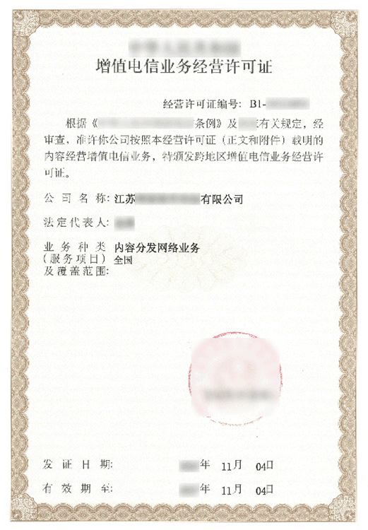 资质全称:第一类增值电信业务许可证-内容分发网络业务 -