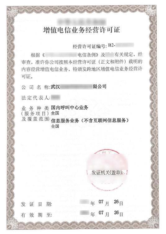 资质全称:第二类增值电信业务许可证-国内呼叫中心业务 -