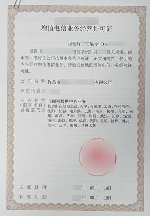 资质全称:第一类增值电信业务许可证-互联网数据中心业务 -